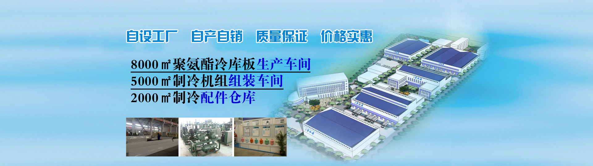 自設8000平方聚氨酯生產車間、5000平方制冷機組組裝車間真正做到自產自銷、讓利客戶。